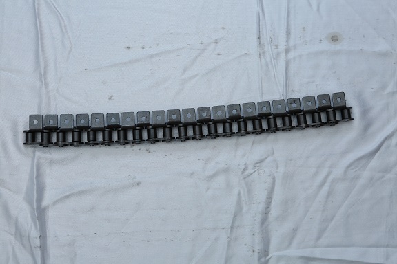 雙鉸接輸送鏈是封閉軌懸掛輸送機的主要牽引構件,一般是由鏈輪或鏈式驅動裝置進行驅動。鑒于當前驅動鏈輪的齒形和驅動塊的尺寸十分分散,一時難以統(tǒng)一,故本標準沒有涉及這方
